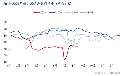 高爐生產(chǎn)情況:唐山地區(qū)126座高爐中有60座檢修(不含長期停產(chǎn)),檢修高爐容積合計(jì)476743;周影響產(chǎn)量約104.83萬噸,產(chǎn)能利用率63.71%,較上周下降0.33%,較上月同期上升2.58%,較去年同期下降27.53%。