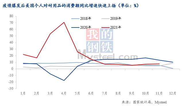 財政政策方面,美國推出了強有力的消費刺激政策,極大地促進(jìn)了美國居民對商品的消費。