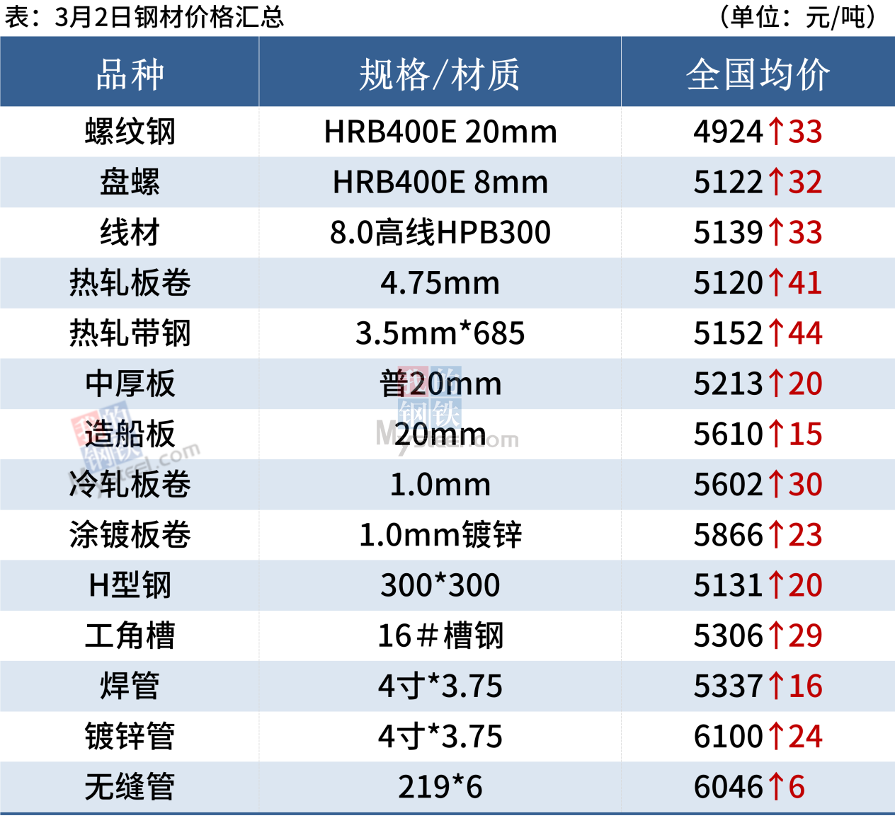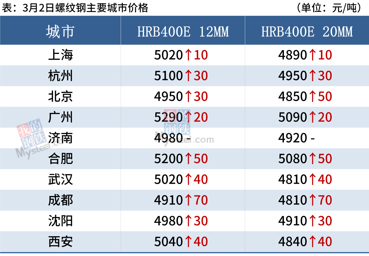 2日,13家鋼廠上調建筑鋼材出廠價20-100元/噸。