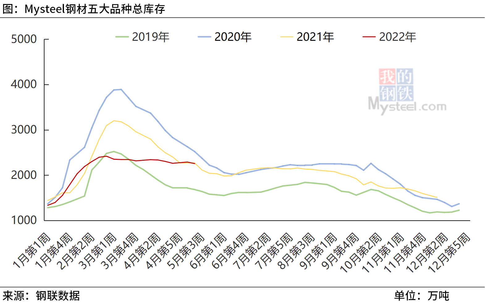這種狀況即便在受到疫情沖擊的2020年也未曾出現過,市場對此憂慮重重,去庫姍姍來遲確實增大了市場風險,甚至有人擔心形成“堰塞湖”。但另一方面看,雖然去庫存緩慢,但絕對水平并不算太高。首先,年內庫存的高點創下2018年以來新低,其次,目前的庫存水平與去年同期基本持平。從庫存結構看,五大品種鋼材社會庫存尚在可承受范圍,鋼廠庫存相對壓力更大一些,上周數據為700.59萬噸,同比增22%。
