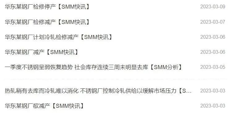 昨日,有市場消息稱,“由于成本過高,虧損嚴(yán)重,華東某鋼廠于3月9日開始檢修停產(chǎn),暫定檢修至4月15日,預(yù)計(jì)影響鋼坯產(chǎn)量約7.4萬噸,均為300系。”