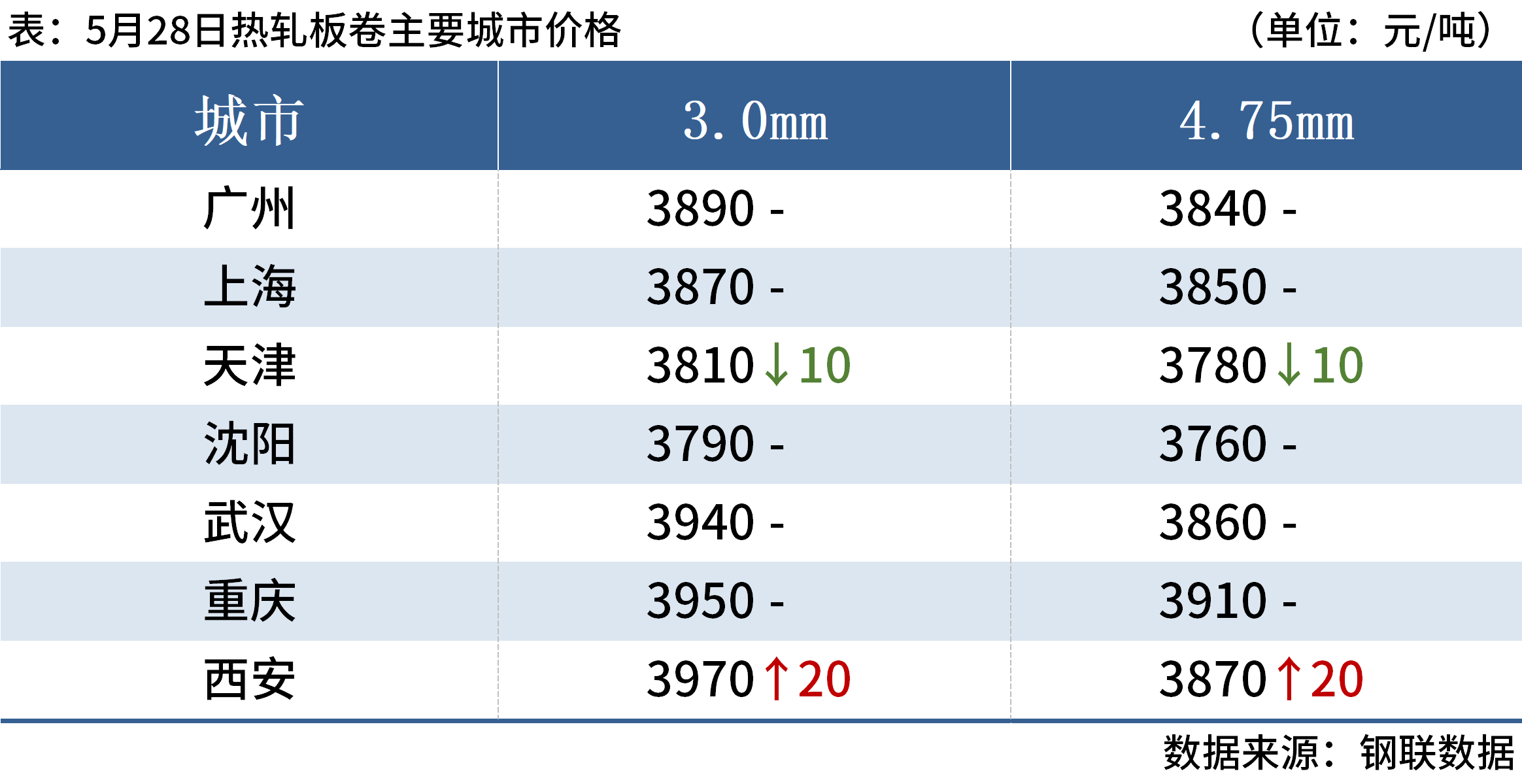 中厚板:5月28日,全國24個主要城市20mm普板均價3927元/噸,較上個交易日持平。期貨盤面午后震蕩趨弱運行,市場交投氛圍偏冷清,整體成交一般。據市場反饋,原料方面來看,焦炭發起提漲,鐵礦石價格震蕩運行,成本支撐尚可,鋼廠生產積極性一般。市場方面來看,對高價資源接受程度有限,低價按需采購為主,整體成交量較昨日有所下降。現階段貿易商操作偏謹慎,快進快出降庫為主,部分暗降出貨以促成交。綜合來看,預計29日國內中厚板價格窄幅震蕩運行。