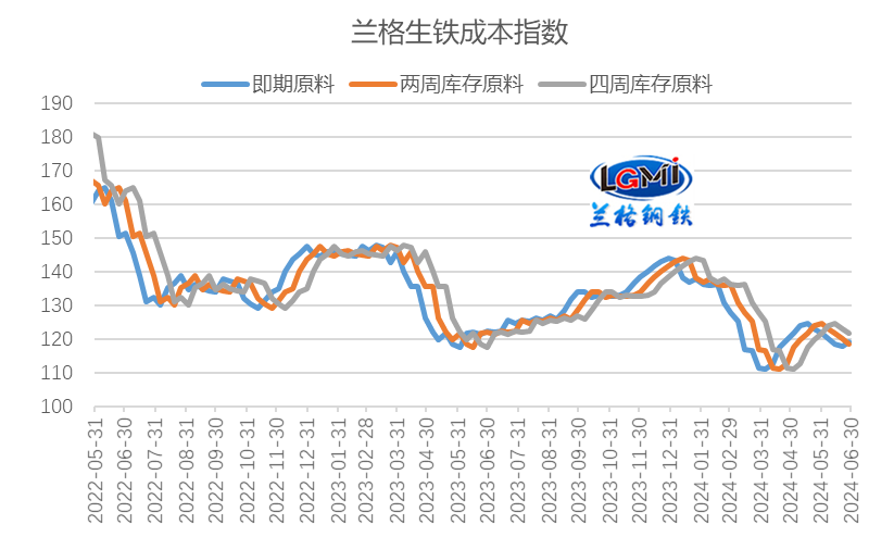 2024年6月份鋼鐵原料均價下跌,月均成本明顯下移