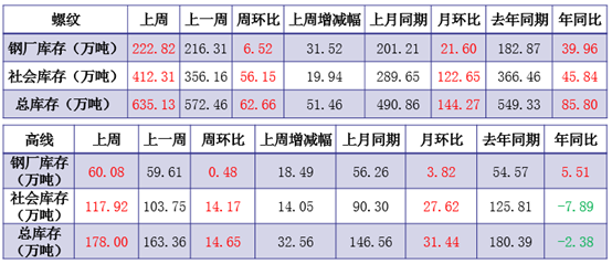 庫存方面,市場到貨明顯增加,北方冬儲(chǔ)資源陸續(xù)到達(dá)市場,預(yù)計(jì)增庫幅度進(jìn)一步加大;供給方面,部分高爐廠冬休停產(chǎn),另外電爐企業(yè)停產(chǎn)放假增多,預(yù)計(jì)本周建材產(chǎn)量仍將明顯下降,螺紋鋼周產(chǎn)預(yù)估降12-15萬噸;需求方面,本周開始南方工地大面積停工,市場進(jìn)入冬休階段,需求停滯;心態(tài)方面,各地鋼廠陸續(xù)出臺(tái)冬儲(chǔ)政策,商家接貨意愿普遍不強(qiáng),本周開始陸續(xù)休市。